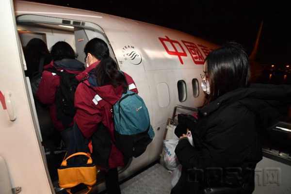 援鄂医疗队登上东航航班