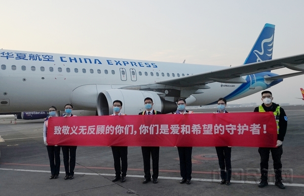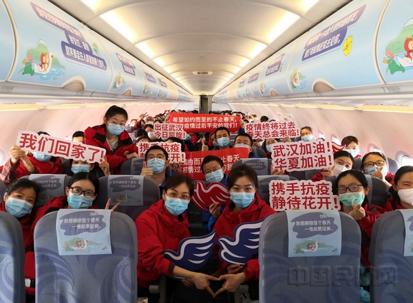 在2月22日当天的航班上,华夏航空机组通过机上广播向医疗队员们说道:“你们是最美的逆行者,感谢你们不惧危险前往武汉,请你们在救治病人时也一定要注意保护自己,到时候,还是我们来接你们回家。”