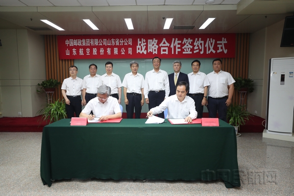 《中国民航报》、 中国民航网 记者许晓泓 通讯员杨万卿 报道:6月15日,中国邮政集团有限公司山东省分公司与山东航空股份有限公司举行战略合作签约仪式。中国邮政集团有限公司山东省分公司党委书记、总经理韩广岳,山东航空集团有限公司董事长、总裁徐传钰出席仪式并致辞。中国邮政集团有限公司山东省分公司副总经理林令才,山东航空集团有限公司副总裁、山东航空股份有限公司总经理苗留斌代表双方签署了协议。