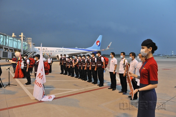 中国民航网 通讯员张佳丽 报道:“在国际疫情形势较为严峻的情况下,你们不畏艰险、勇担重任,逆行援非、为国出征。而今,你们圆满完成重任、使命已达,平安凯旋、载誉而归。我们真诚地向您说声谢谢……”这是在河北航空NS3302三亚-石家庄航班上,机组通过客舱广播向航班上的中国援助刚果(金)抗疫医疗专家组表达最崇高的敬意。