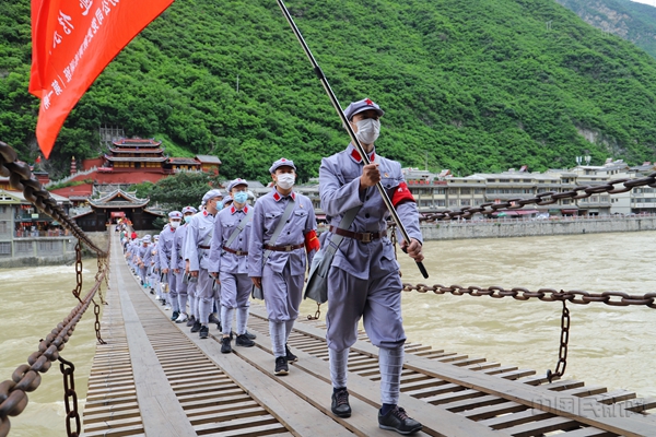 17日,全体学员抵达泸定,切实感受飞夺泸定桥的壮举,学员们来到红军飞夺泸定桥纪念碑公园,为英雄献上了花篮。一进大门,映入眼帘的就是22根花岗岩石柱。在讲解员的阐释下,大家了解到,22根花岗岩石柱代表着当年22位飞夺泸定桥的勇士。纪念碑碑体为铁索抽象几何体造型,错落有致,与碑体紧紧相连的前部平台上,屹立着两尊在铁索上攀援前进的红军战士铜像——一个举枪射击,一个挥臂投弹,全体学员仰望凝视,同时进馆内参观,感受红军战士的坚毅与信念。18日,全体学员踏上泸定桥,再次感受回荡在这座85年前曾历经一场激战的记忆与“十三根铁链托起一个共和国”的震撼。随后,中共甘孜州委党校为学员们颁发了结业证书。全体学员在班旗上签名留念。