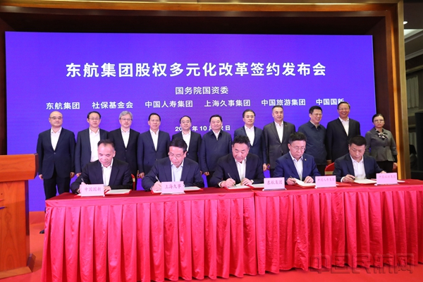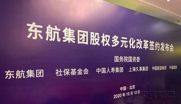 《中国民航报》、中国民航网 记者曾晓新报道:10月12日下午,中国东方航空集团有限公司在北京宣布正式实施股权多元化改革。东航集团按照党中央、国务院决策部署,在国务院国资委的指导下,在集团层面引入财政部所属的中央金融企业中国人寿保险(集团)公司、上海市国资委所属的上海久事(集团)有限公司,以及两家中央企业中国旅游集团有限公司和中国国新资产管理有限公司的增资资金共计310亿元,成为多元股东的央企集团。这不仅是国企改革三年行动在中央企业集团层面股权多元化改革的"首单",也是在决胜建成全面小康社会、决战脱贫攻坚的关键阶段,东航集团统筹疫情防控和经济社会发展,做好"六稳"工作落实"六保"任务,通过深化改革育新机、开新局的一项重大战略举措。