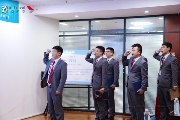 航务部副总经理苏水涛带领五位新放单飞行签派进行宣誓