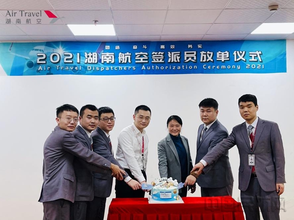 中国民航网 通讯员刘玉怀、付豪 报道:11月15日,由湖南航空航务管理部举办的2021年飞行签派员放单仪式在湖南航空行政中心隆重举行,五名由湖南航空独立培养的首批飞行签派员成功放单,这标志着在签派这条专业的战线上,湖南航空取得了阶段性的成功。湖南监管局党委副书记苏曦、航务处副处长张全莅临指导,湖南航空党委书记、董事长兼总裁吴嘉竹,执行总裁张军锁,运行副总裁徐曦,行政副总裁王南南,AOC总监顾暐等领导出席活动。