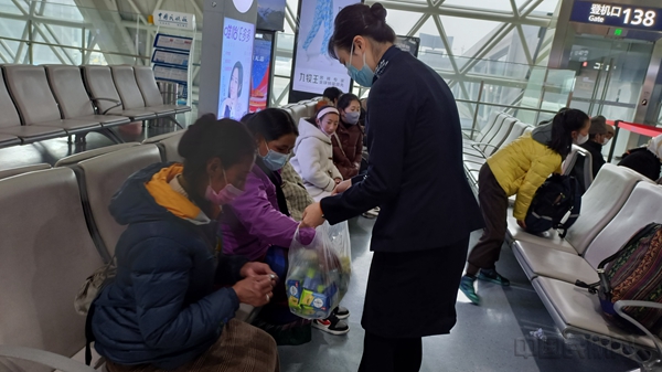 找齐旅客后,考虑到旅客情况特殊,工作人员马上报给当日值班领导,并由报当日总值班同意后,柜台免费为该团队21位旅客改签,并协助旅客进行北京健康宝申领,全程陪同引导旅客并为其申请快速安检专用通道。