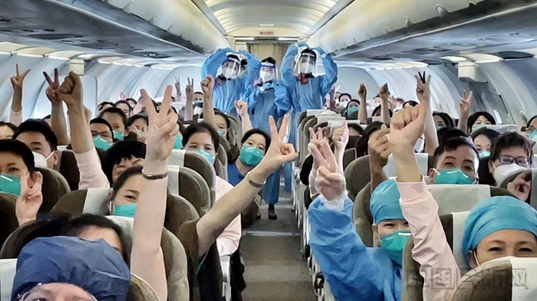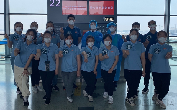 搭乘MU7113航班启程之际,山西医疗队员合影留念-