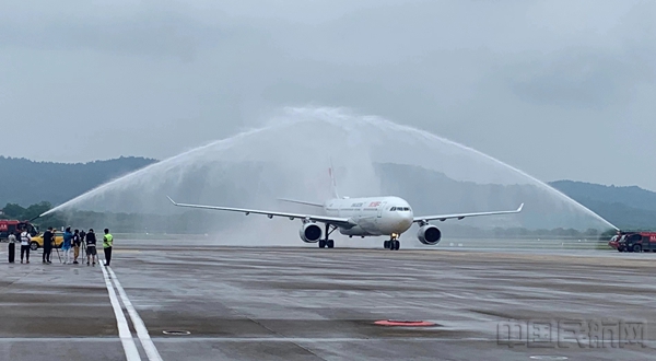 东航安排A330宽体客机欢送江西医疗队回家,回程航班在南昌机场受到水门迎接