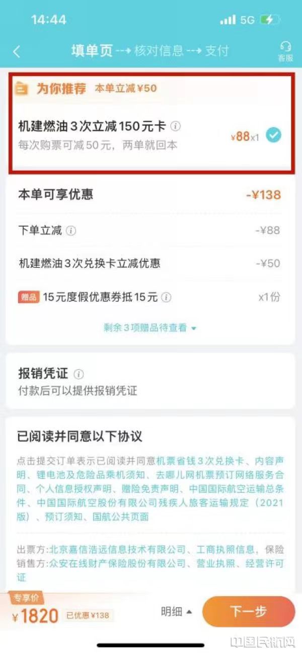 暑期来临,去哪儿平台上全国各地机票预订量环比上个月增长近四成,从端午节之后,全国民航国内旅客量已恢复至2019年同时段五成以上,各地区用户暑期出游意愿强烈。为帮助用户降低出行成本,去哪儿平台推出了机建燃油费次卡。用户在预订机票时购买88元的机建燃油次卡,可以分三次抵扣总计150元的机建燃油费用,累计最多可帮用户节省62元。