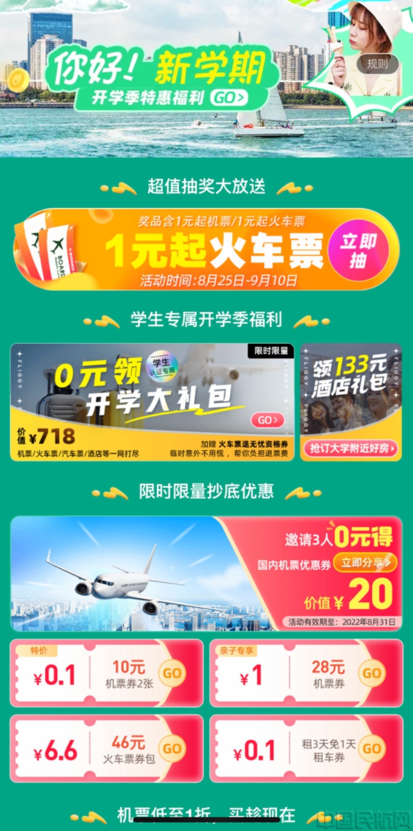 飞猪联合20多家航司推出开学季机票专属补贴