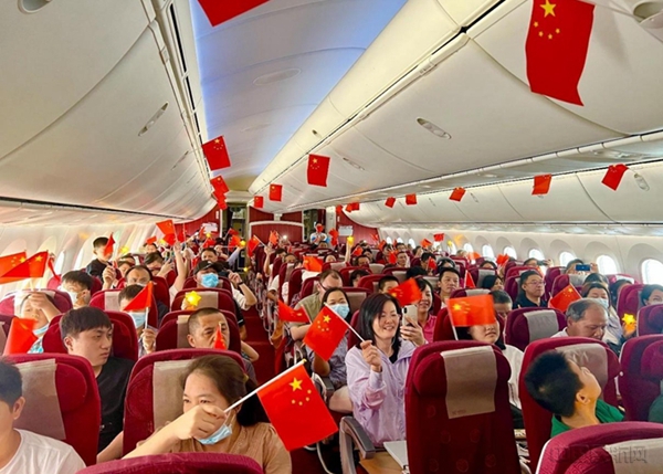 2022年3月9日,在HU0483北京—罗马尼亚布加勒斯特—济南航班上,有着20年党龄的乘务长任婧带领组员执行乌克兰撤侨保障任务,接中国同胞回家。“我们做了不少准备工作,希望他们的回家之旅温馨、安心。在客舱内贴满国旗,准备好赠送给旅客的小国旗,还在登机口展开国旗,就是希望他们一眼看到我们,知道我们在这里接他们回家”。