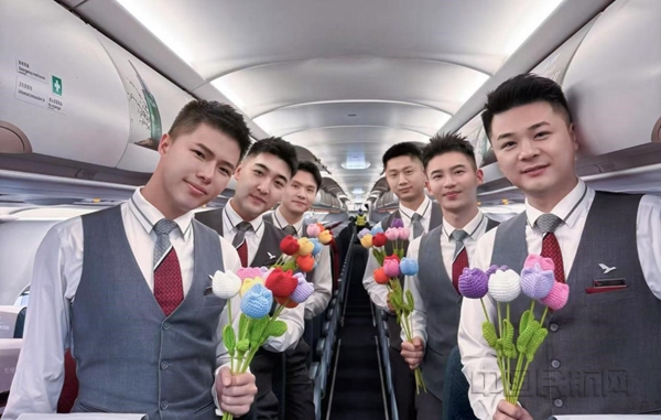 不仅如此,乘务员们还为女性旅客们精心准备了各种颜色的郁金香作为礼物,郁金香象征着美好和祝福,也为这段特殊的旅程增添了一抹温馨的色彩,满满的节日氛围让旅客们都洋溢着快乐的笑容。