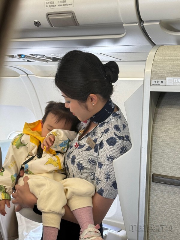 航程中,李安琪考虑到餐食里的水果是冰镇的,她主动询问道:“女士,要不我帮您把水果在热水里泡一下再给宝宝吃吧,直接吃太凉了。”李安琪蹲在孩子身边,用折纸、讲故事等小游戏转移她的注意力,随着轻声的安抚,小朋友安静地睡着了,期间小朋友睁开一次眼睛,看到自己旁边还是李安琪,不哭不闹的继续呼呼大睡。周围有旅客看见这温馨的一幕,感叹道:“坐飞机还能帮带小孩,直接哄睡着了,这么好啊。”李安琪贴心的服务也让这位新手妈妈焦虑的心情逐渐平复,放下心来闭目养神。