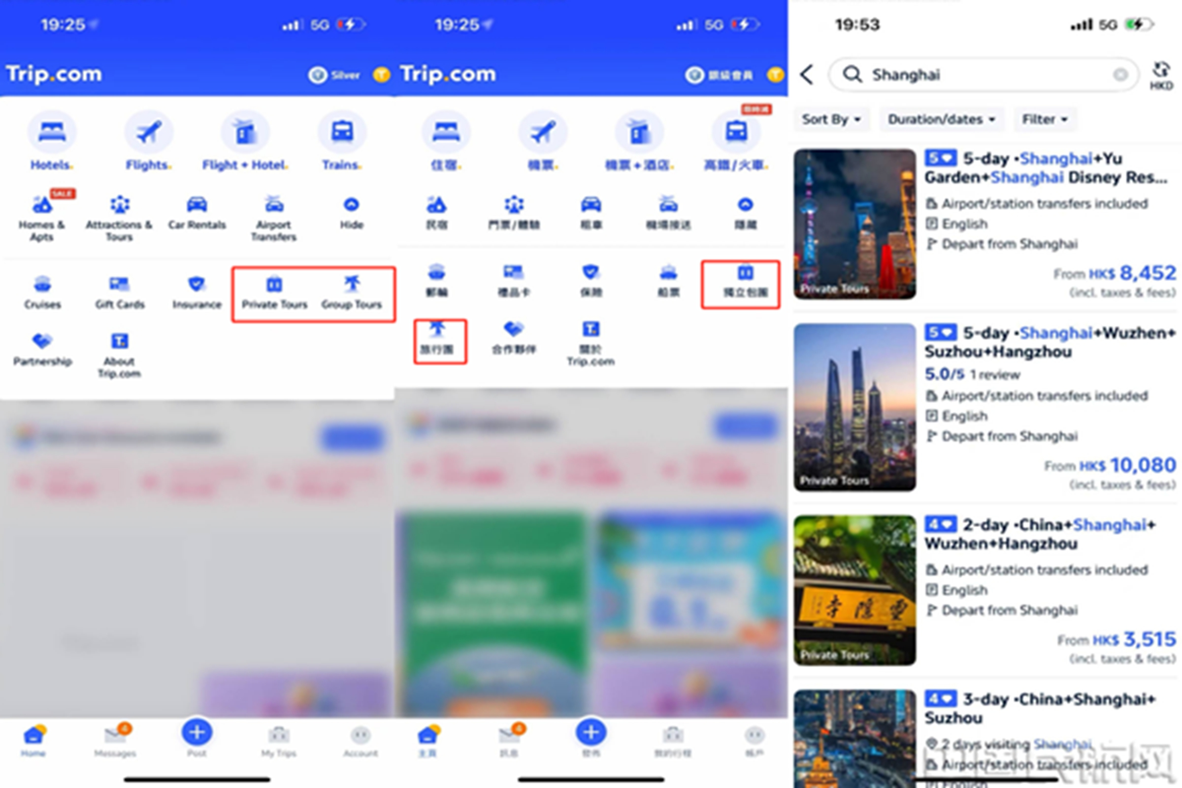 携程团队游板块在Trip.com国际平台的展示