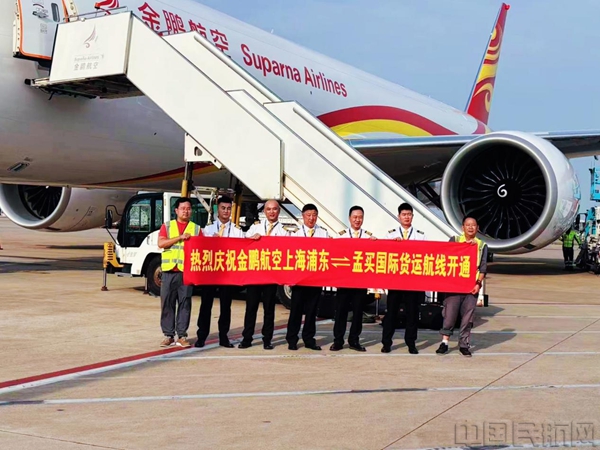 《中国民航报》、中国民航网 记者胡夕姮 通讯员刘国琦报道:10月2日17时25分,金鹏航空Y87441航班满载近100吨货物,从上海浦东国际机场起飞,直航印度孟买贾特拉帕蒂·希瓦吉国际机场。这是金鹏航空开通的首个飞往印度的国际货运航班,由其新引进的首架波音777F全货机(注册号B-227U)执飞。航班搭载的货物涵盖生活用品、工业产品等多个品类。