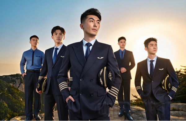 山航新一代飞行员制服立足实用与舒适,全面升级版型、面料与配饰细节,融汇“一览众山小”的泰山气魄与“天圆地方”的传统哲思。在单排扣西装基础上新增了双排扣,采用军装制式与微落肩风衣廓形,呼应泰山巍峨连绵的山势线条,诠释飞行员凌云从容、笃定专业的职业风范。面料选用高性能索罗娜弹性材质,兼具透气性与抗皱性,确保万米高空之上依旧沉稳自如、姿态挺拔。