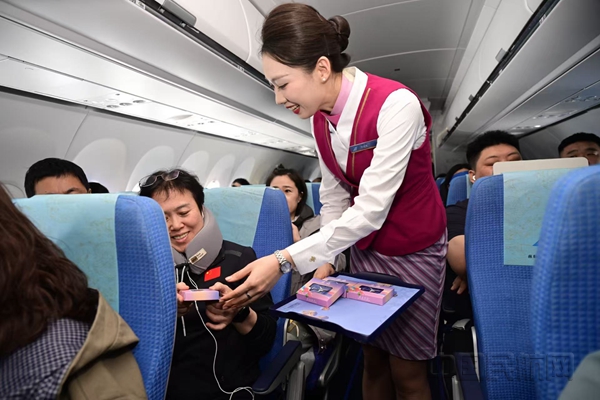 作为十五运会官方合作伙伴,南航在此次航班中全面践行低碳理念,将使用国家核证自愿减排量CCER抵消本次航班碳排放,实现绿色飞行。航班巡航阶段,乘务组向旅客介绍本次全运会的办赛理念,介绍南航将通过捐赠1万吨碳配额助力实现组委会提出的碳中和目标。同时向旅客介绍近年来南航在绿色发展方面做出的努力,自2024累计加注可持续航空燃料近六千吨,有效减少传统燃油消耗与碳排放。