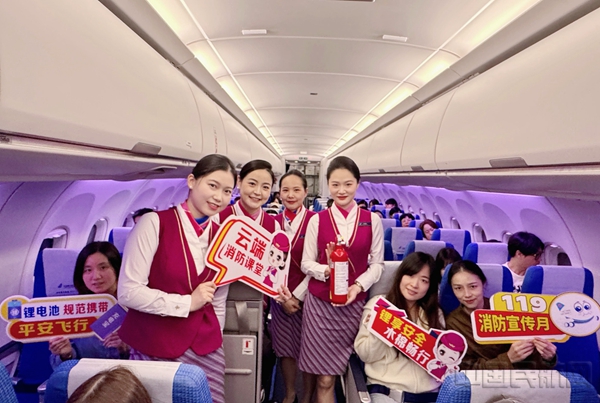 《中国民航报》、中国民航网 记者胡夕姮 通讯员韩筱、 潘水花 报道:11月10日,南航上海分公司在浦东飞往昆明的CZ3677航班上,成功举办了一场以“锂享安全 木棉畅行”为主题的云端消防课堂。此次活动聚焦民航出行中的消防安全,特别是锂电池设备的安全使用规范,通过创新互动实操体验,提升广大旅客的安全出行意识与应急处突能力。