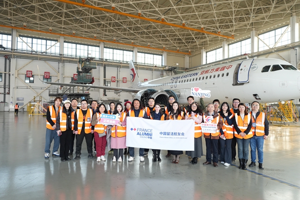 在东航江苏公司工作人员的引导下,留法校友先后参访了东航江苏公司机组保障中心、“穆慧妹空中服务创新工作室”、运行控制分中心及机库等关键运行区域。在机组保障中心,航前准备的严谨流程与随处可见的安全文化令参访者印象深刻;在创新工作室,多元化的服务管理理念与创新举措展示了空中服务的新内涵;在运控分中心,实时航班动态与专业保障体系让校友直观感受到航班运行背后的科技支撑;在机库内,空客A320飞机的检修现场与工程师的细致讲解,引发了参访者的热烈讨论。