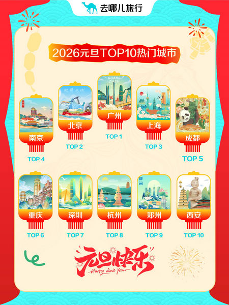 更多旅客选择“请3休8”,用一次飞行打开2026年。去哪儿旅行数据显示,元旦假期,热门目的地机票量同比增两成,飞往云南普洱等小机场城市机票量增逾2倍。还有不少年轻人热衷出境跨年,去哪儿旅行用户预订了全球近3000个城市的酒店,23-30岁旅客购买出境机票增42%。