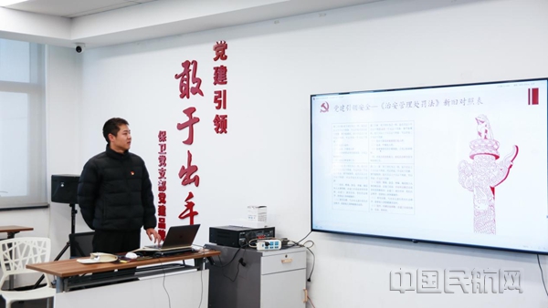 在法律专题学习环节,参会党员重点学习新修订《民航法》《治安管理处罚法》及《民航从业人员安全工作作风建设管理办法》。聚焦学习《民航法》新增“航空安全保卫”专章、航空安全员纳入航空人员管理等条款;解读《治安管理处罚法》中扰乱航空器秩序、散布虚假信息、危害公共安全等条款,明确违法认定标准与处罚幅度。通过案事例剖析、新旧条款比对、互动答疑等形式,深入学习与空防业务密切相关条款,明确岗位职责边界、法条适用场景,强化依法履职,同步掌握作风建设要求。以此学习推动法治思维贯穿航班安保执勤全流程,以法治保障与作风建设双轮驱动,筑牢空防安全防线。