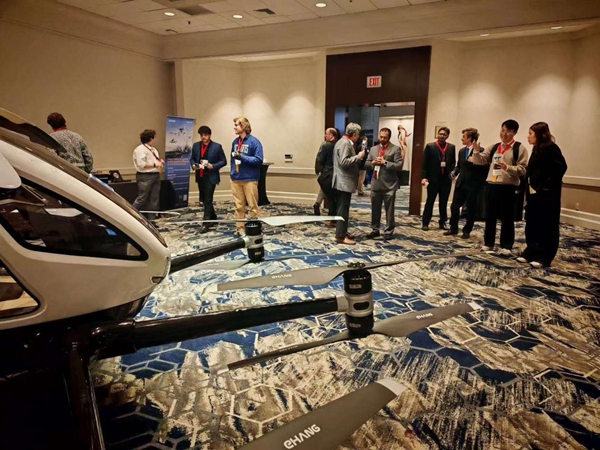 亿航智能EH216-S在2026变革性垂直飞行大会现场吸引众多嘉宾的关注(亿航智能供图)
