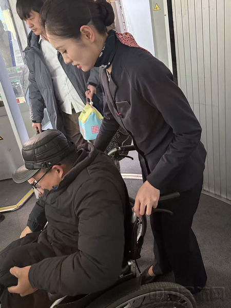 乘务组服务行动不便的轮椅旅客