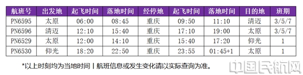 太原—重庆—清迈航线(航班号PN6595/PN6596)计划3月28日开通,每周三、五、日执行。清迈是泰国北部历史文化名城,素以清新的山城风光、悠久的兰纳文化闻名,是众多游客心仪的旅游目的地。该航线通过重庆枢纽中转,将山西及周边旅客引入重庆,再由重庆飞往清迈,进一步强化重庆的国际中转集散功能。
