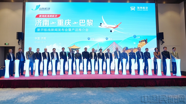 会上宣布,海南航空将于3月16日正式开通济南—重庆—巴黎国际航线,计划每周执行两个往返航班,班期为去程每周一、五,回程每周二、六。该航线的开通,将为山东及周边地区旅客往返法国提供便捷通道,进一步夯实中法“空中丝绸之路”互联互通根基。