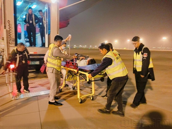 由于患病旅客独自出行无人陪同,机场地服人员时刻陪在其身边,协助急救人员将旅客转运至医院接受进一步救治。最终,旅客恢复了意识。地服人员也与其家属取得联系,家属表示由衷感谢。