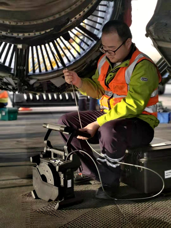 随着公司机队规模不断壮大,飞机发动机孔探工作由最初的几十台次增长到2019年的1591台次。“神探”班组团队由1人发展到19人,成为多基地孔探、多站点支援的专职团队,为公司机队的安全运行提供了可靠的保障。2019年底,“神探”班组迎来了第10000台次发动机核心机孔探检查工作。