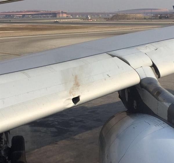 据报道,11月16日,该航班从沙特阿拉伯东北部港市达曼飞往吉达,该航班降落之后,一位乘客发现飞机左翼上有一个裂口,经工作人员调查后发现裂口里面有一只老鹰的死尸,已经嵌入机身。