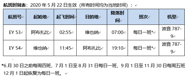 该航线引入了宽体飞机,这将有助于阿提哈德提高在阿布扎比-维也纳航线乃至整个阿提哈德货运网络上的腹舱运输能力。