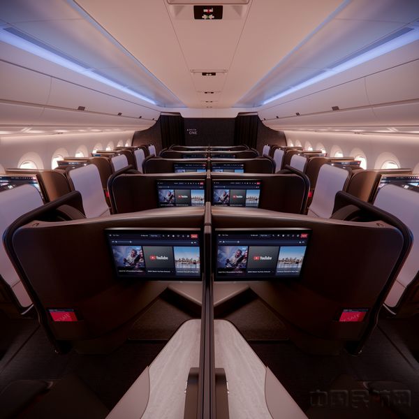 空客A350-1000客机上的新一代达美至臻商务舱套间采用了反鱼骨式布局,外侧座位面向舷窗,客舱中央相邻的套间则配备了滑动式窗板。