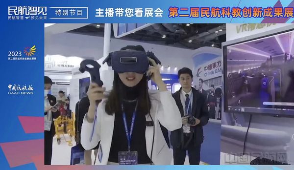 “我戴上VR头盔后,看到的是空客A350客舱内部的实景。”主播在现场体验中国航空集团有限公司带来的VR头盔后,还通过展台大屏了解了北斗技术在国航飞机上的应用情况。该技术基于北斗卫星导航系统生成,再由北斗短报文发送到地面运行控制中心形成国航飞机航班轨迹图,可对国航飞机进行实时监控跟踪,完全自主可控的定位追踪系统在民航飞机上的广泛应用,为确保行业安全提供了有力保障。