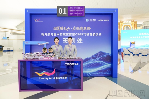 中国民航网 通讯员付飖歆 报道:2025年12月30日上午10时,新海航航空集团旗下乌鲁木齐航空在乌鲁木齐天山国际机场隆重举行仪式,庆祝其首架国产C909飞机正式投入商业运营。随着本次主题为“国翼耀天山·启航新丝路”的首航仪式顺利完成,标志着乌鲁木齐航空首架C909飞机在丝绸之路经济带核心区的常态化运营拉开序幕,开启服务新疆、辐射丝路的全新航程。