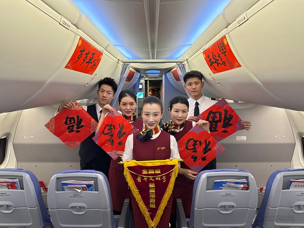 从重庆飞往新加坡的国航CA449航班在值机区、休息室、登机口等处向旅客赠送新年贺卡,飞行途中推出春节主题趣味问答活动,在欢声笑语间传递新春温情。