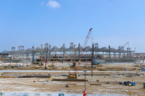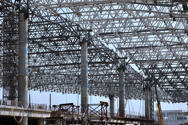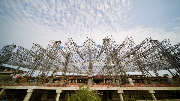 T2航站楼主楼钢结构网架完成整体提升(珠海航城机场建设公司供图)