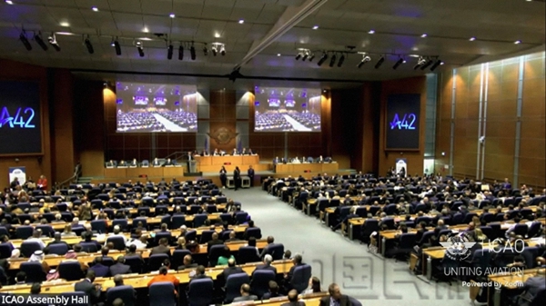 国际民航组织第42届大会全体会议现场(国际民航组织官方直播画面)