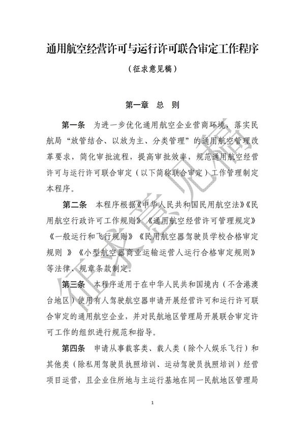 中国民航网讯:11月10日,民航局运输司发布关于征求对《通用航空经营许可与运行许可联合审定工作程序(征求意见稿)》意见的通知,具体内容如下: