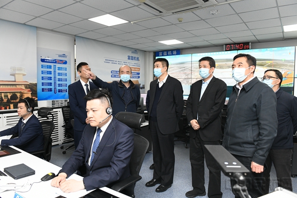 宋志勇一行在于田机场塔台了解机场运行情况