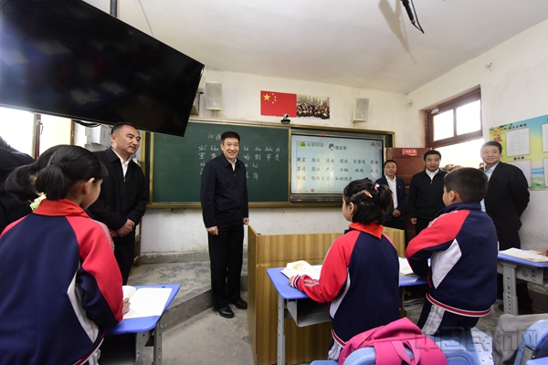宋志勇一行在策勒县达玛沟乡硝尔哈纳村小学实地调研(本文图片均由记者张哈斯巴根拍摄)