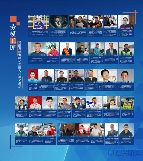 在此次大会上展示的民航系统劳模和工匠人才。(中国民航工会供图)