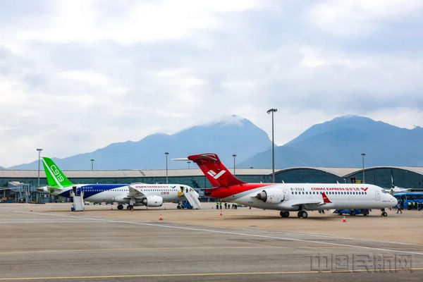 国产大型客机C919和国产支线客机ARJ21在香港国际机场进行静态展示
