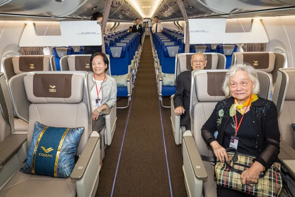 70多年前从香港北飞的12架飞机清一色都是从欧美进口的螺旋桨飞机。70多年后的今天,在起义的发生地香港,为中国人民的解放事业和新中国民航事业立下不朽功勋的“两航”起义及“护产”斗争亲历者代表自豪地登上了由我国自主研制的喷气式客机。在C919崭新而宽敞的客舱里,“两航”前辈及亲属代表一边细致地参观、体验,一边频频向工作人员了解飞机的基本情况。“空间很大,远航也不会太累。”“座椅很舒服!”“这款飞机一定行!”参观过后,大家对C919赞叹连连。
