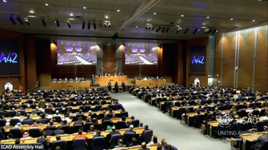 国际民航组织第42届大会全体会议现场(国际民航组织官方直播画面)