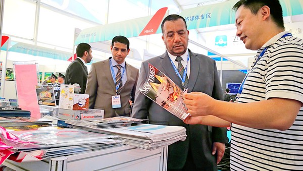 中国民航报社出版社参展人员用中英文向中外观众详细介绍了各种图书、报刊杂志。航展每天更新展览最新一期《中国民航报》以及最近报刊杂志,参展观众翻看后表示了极大的兴趣,对各种报刊杂志表示充分肯定。