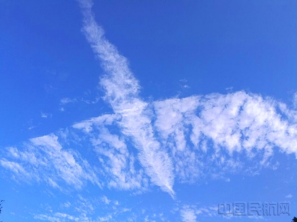 瞧!九华山上空当天演绎的“飞机”造型艺术。(王安民/摄)