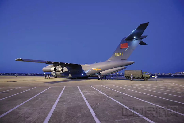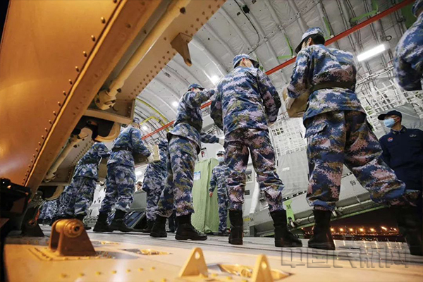 据报道,按照中央军委命令,2月17日凌晨,空军出动包括国产运-20在内的3型8架运输机第四次向武汉空运676名军队支援湖北医疗队队员和一批医疗物资。这是继2月13日国产运-20大型运输机首次参加非战争军事行动后,再次执行任务。