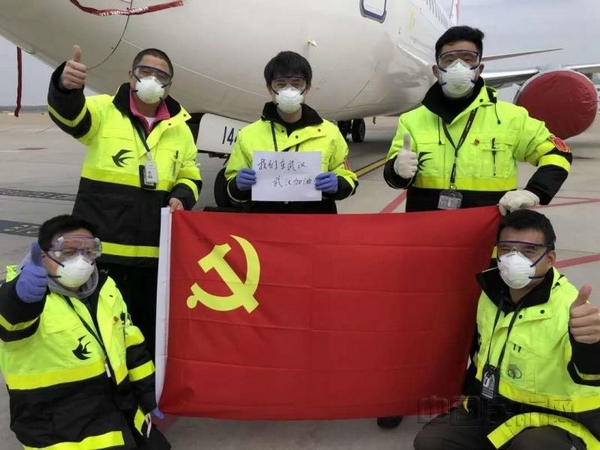 除夕夜,南航湖北公司飞机维修厂接到广州赴武汉救援包机的保障任务,党总支书记张云兵立即组织航线车间和支援车间成立保障小组。车间干部带头,党员积极报名,在极短的时间内集合赶赴保障现场。党员邓华清更是从武昌驱车直奔机场,任务顺利结束已是大年初一的凌晨三点多。他们说,医护人员向死而生,我们做的这些算不得什么,但我们会永远记得这个除夕夜里的那份团结、坚强和担当!