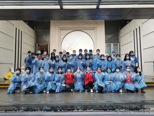 参与社区抗疫的医护、居委、物业、志愿者等工作人员合影